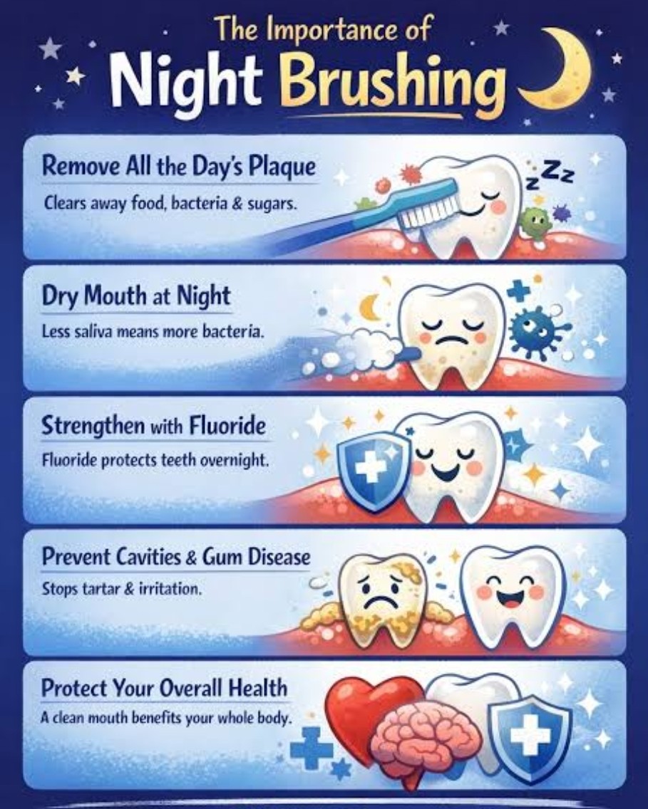 Night brushing matters more than any other brush of the day because of what’s happening in your mouth while you sleep.